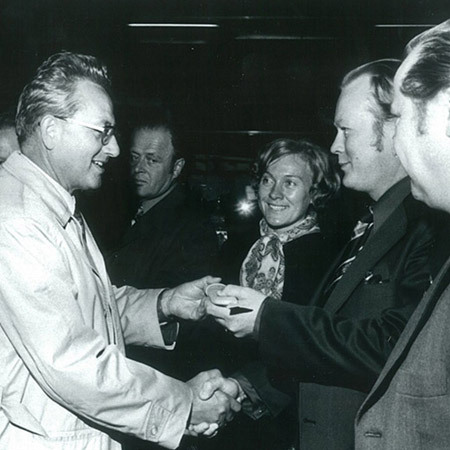 Foreign Minister Ahti Karjalainen and Senegalese visitors at the factory in the 1970s. The annual production exceeded the limit of one million, a…